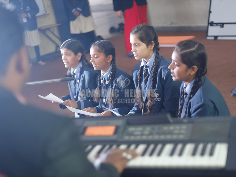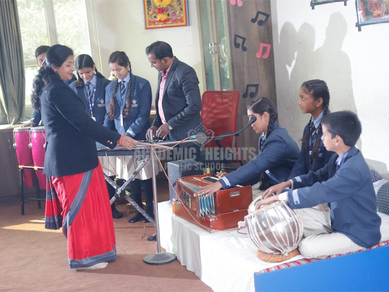 We follow a structured music training program. Hindustani vocal is provided to the students from early years of joining. Various assessments, certifications, presentations, and victories at various competitions at district/zonal levels enable students to pursue music.
